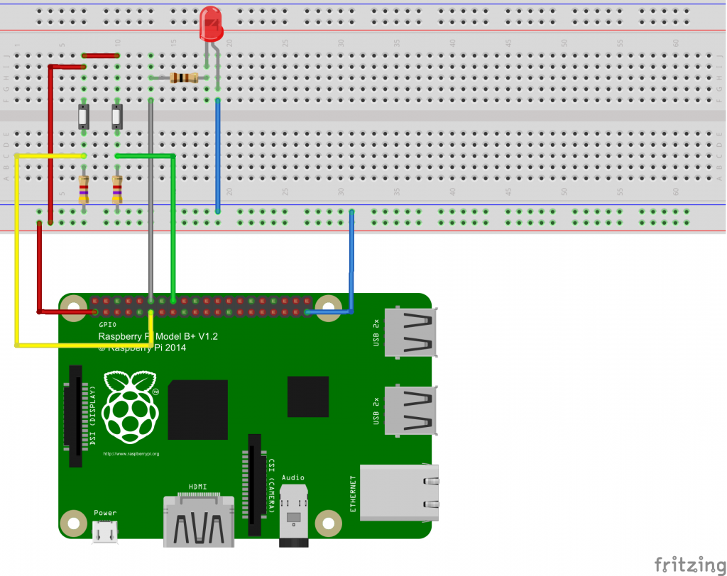 Tässä harjoituksessa himmennämme aikaisemmassa harjoituksessa kytkemäämme lediä. Ensin lisäämme toisen kytkimen. Tarvitsemme siis kytkentään